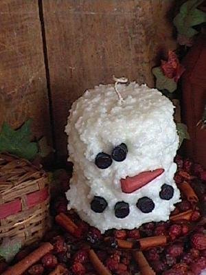 This snowman is adorable with his wax coal eyes, smile and little wax carrot nose. He measures 3 1/2" x 4". He'll come wonderfully scented in your choice of over 80 of our scents! This candle will be completely handmade and unique, therefore, please allow 2-3 weeks for delivery.